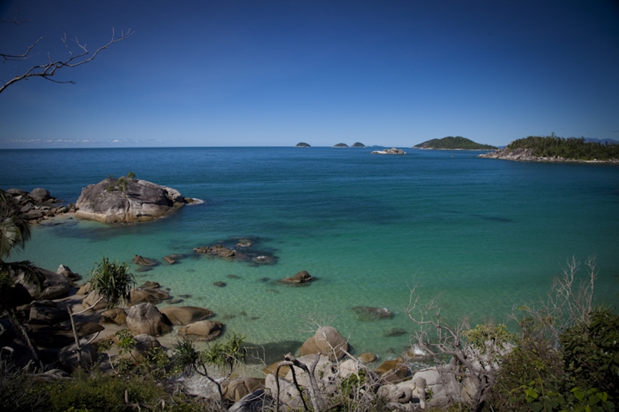 “Among the islets of the Family group, sprinkled between Hinchinbrook and Dunk Islands, not one is denied distinction ... There is, of course, one scene which combines more of excellences than the others, however admirable individually. A little bay lies open to the turbulent southeasters, yet lacks not a sheltering cove wherein a small boat may nestle. The cove is formed by a bold and rounded mass of granite, on which pandanus palms and straggling shrubs find foothold. The boat glides round the sturdy rock, revealing a white beach, the sand of which has been ground to such singular fineness that it feels as silk underfoot ... From a low pinnacle of rock, on which an osprey is fond of perching, the virtues of the wider scene are best revealed. Five islets, wildernesses of leafage, trip out to the east. A mass of fantastic rocks, round which confusing currents swill, intercepts the fairway, and beyond the islets are the Brook Group, with Goold Island and Hinchinbrook to the right to complete the picture ... Few visit the spot. All its charms are held in reserve.”